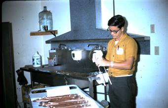 George Forrester with customer